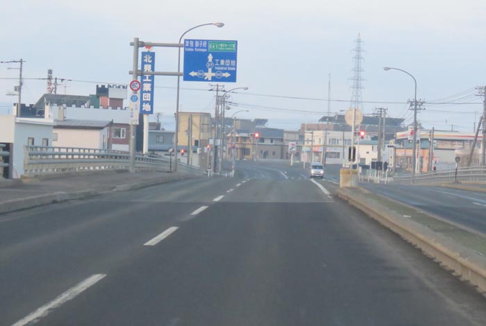午前5時50分、西3号線とん田通りの北見中央病院横から無加川橋方向