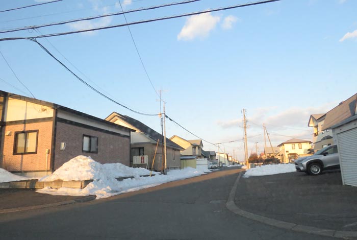 産岸通りから左折して西5号線のバス停前から北光通り交差点方向