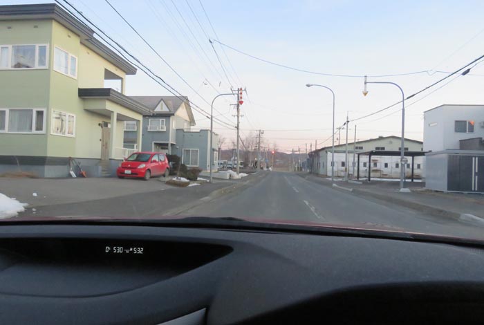 末広町の南岸通り、西4号線バス停前から野付牛自動車学校方向