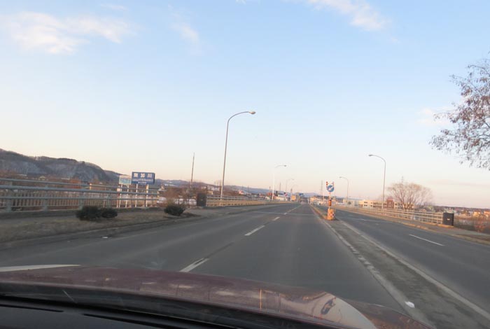 とん田通り、無加川橋を渡り錦町の南岸通り交差点