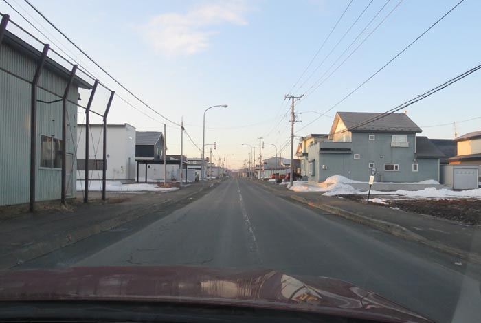 産岸通りから左折して西5号線のバス停前から北光通り交差点方向
