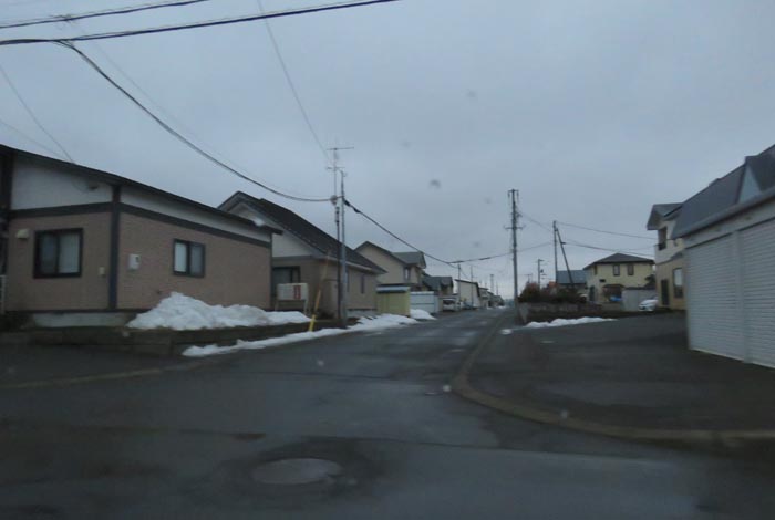産岸通りから左折して西5号線のバス停前から北光通り交差点方向