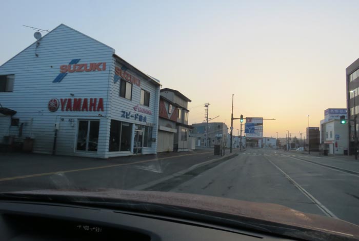 午前5時30分、国道39号、北1条通り交差点