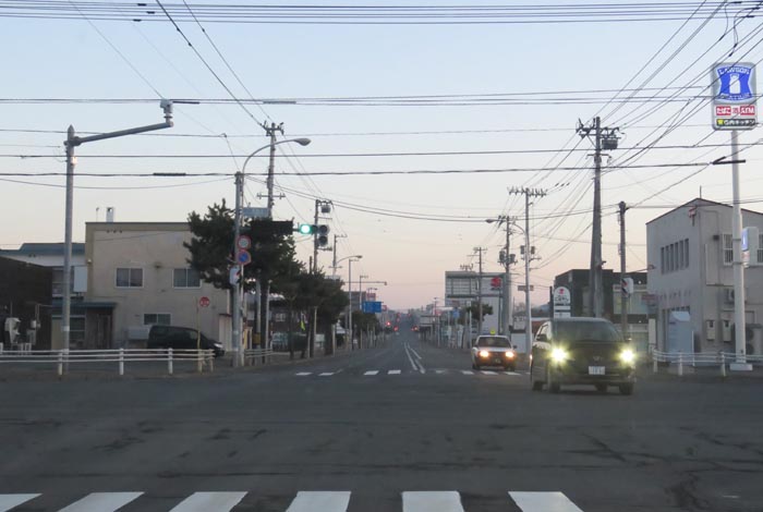 南岸通り、とん田通りの交差点から右は北光神社方向