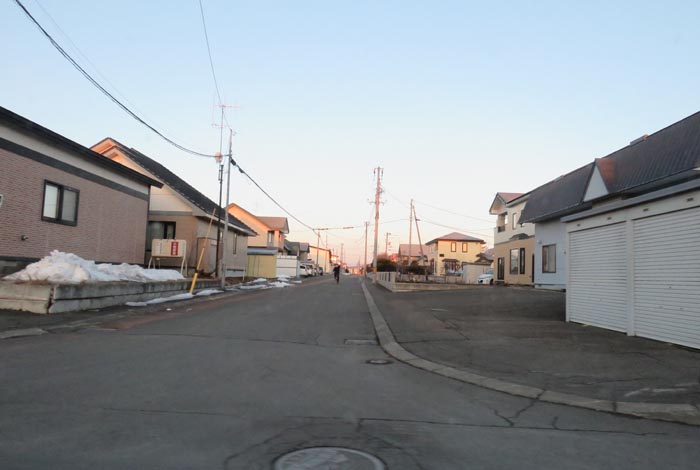 産岸通りから左折して西5号線のバス停前から北光通り交差点方向