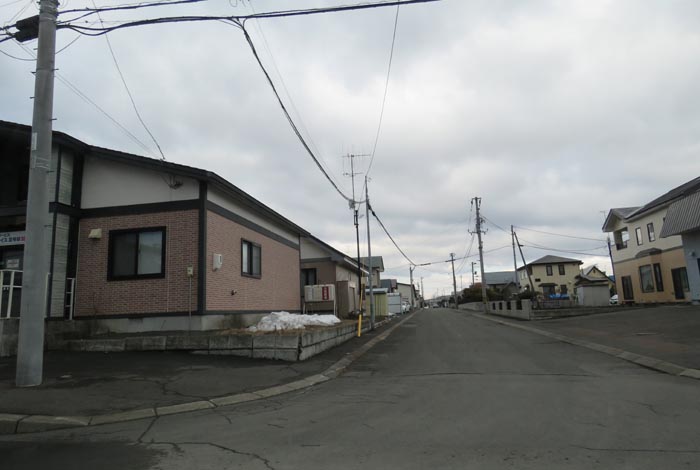 産岸通りから左折して西5号線のバス停前から北光通り交差点方向
