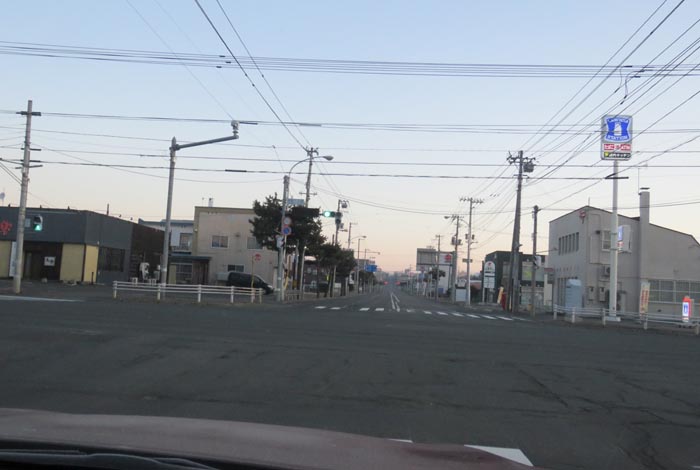 南岸通り、とん田通りの交差点から右は北光神社方向