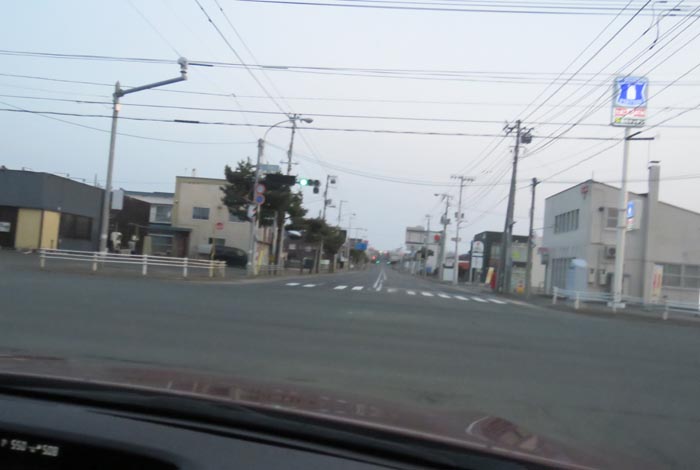 南岸通り、野付牛自動車学校前、前方はとん田通りの交差点