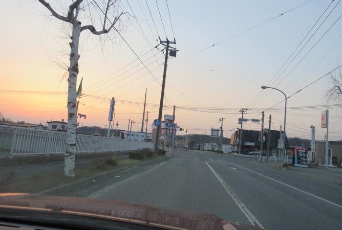 末広町の南岸通り、西4号線バス停前から野付牛自動車学校方向