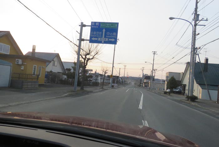 昭和通りの小泉中学校グラウンド角の交差点から北見大橋方向