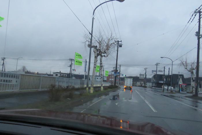 末広町の南岸通り、西4号線バス停前から野付牛自動車学校方向