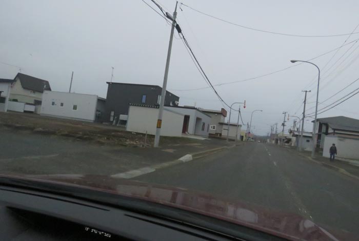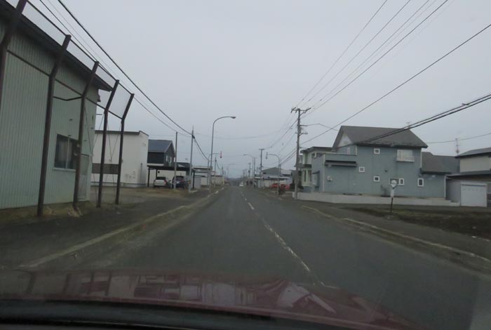 産岸通りから左折して西5号線のバス停前から北光通り交差点方向