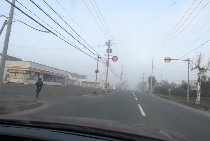 午前5時10分、南岸通り、野付牛自動車学校前から無加川町方向
