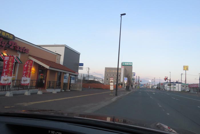 午前4時40分、北4条通りの国道39号交差点を右折で緑園通り方向
