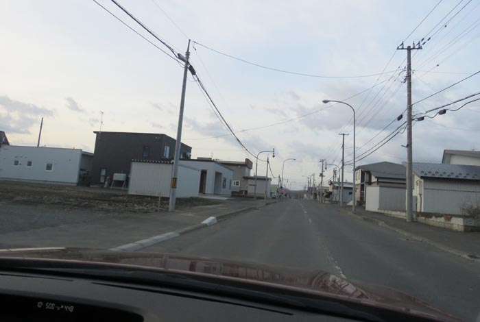 産岸通りから左折して西5号線のバス停前から北光通り交差点方向