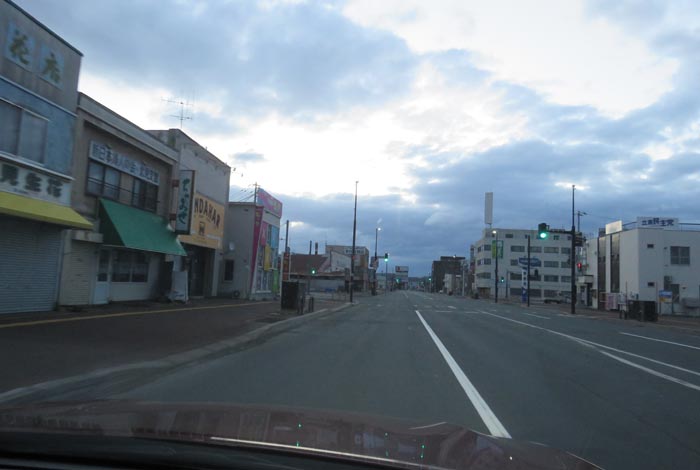 末広町の南岸通り、西4号線バス停前から野付牛自動車学校方向