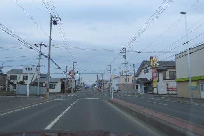末広町の南岸通り、西4号線バス停前から野付牛自動車学校方向