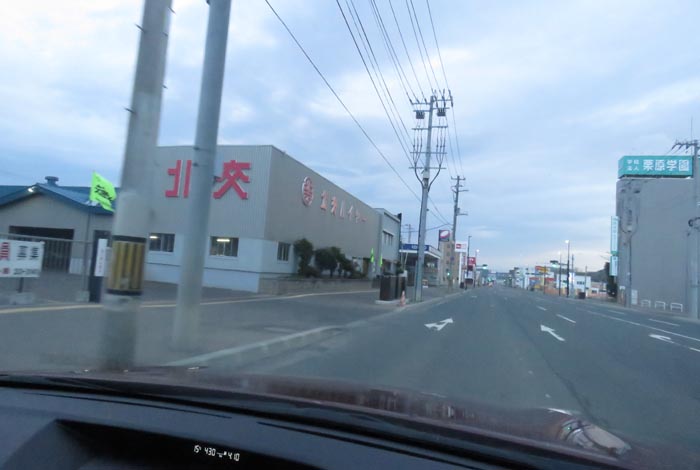 末広町の南岸通り、西4号線バス停前から野付牛自動車学校方向