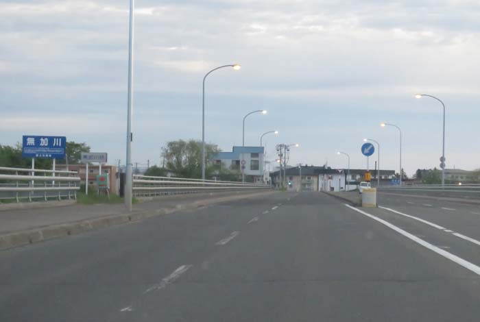交差点から奥が無加川の右岸堤防で写真奥が国道39号方向