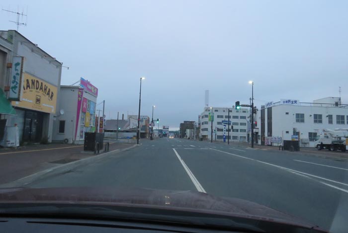 午前4時00分、西5号線、前方は南岸通りの交差点