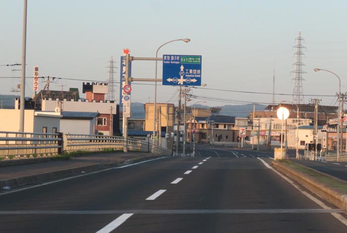 とん田通り、無加川橋を渡り錦町の南岸通り交差点
