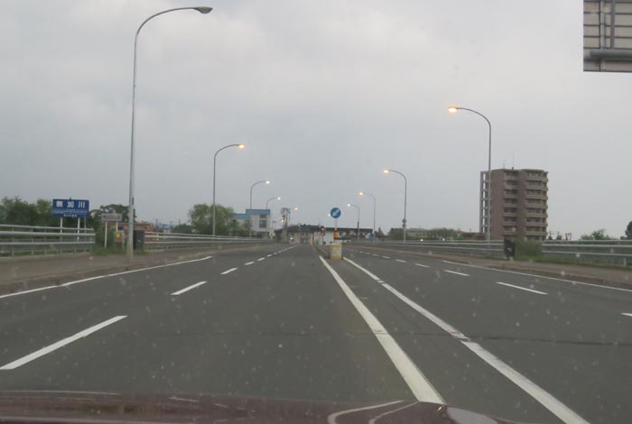 交差点から奥が無加川の右岸堤防で写真奥が国道39号方向