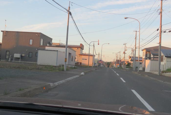 産岸通りから左折して西5号線のバス停前から北光通り交差点方向