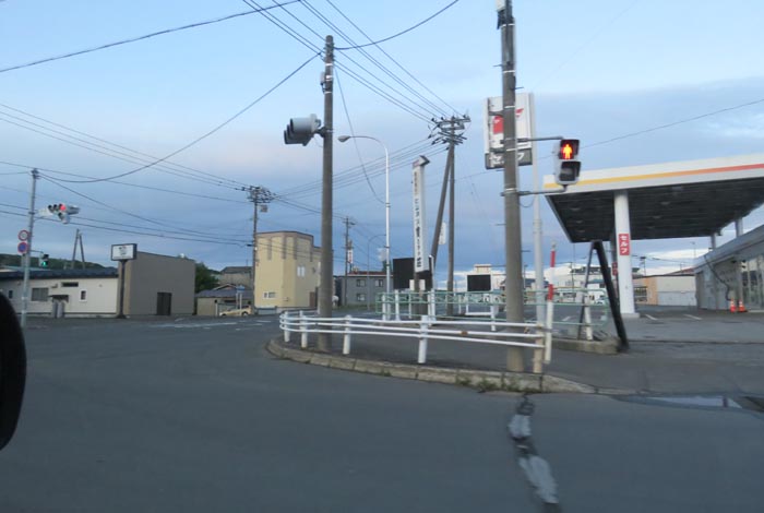 南岸通り、野付牛自動車学校前、前方はとん田通りの交差点