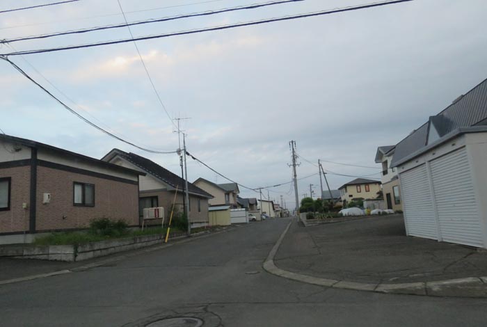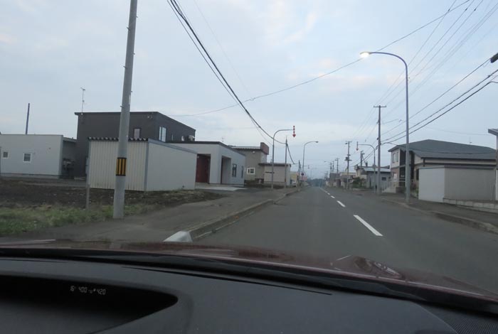 産岸通りから左折して西5号線のバス停前から北光通り交差点方向