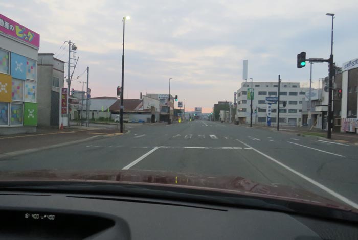 午前3時50分、南岸通り、前方は西5号線の交差点