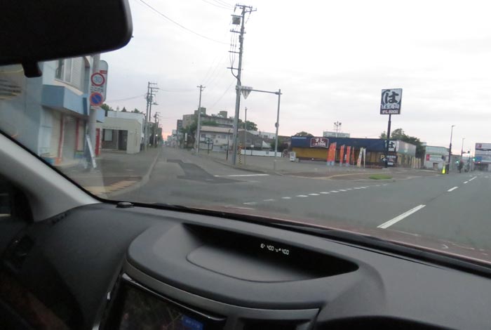 末広町の南岸通り、西4号線バス停前から野付牛自動車学校方向