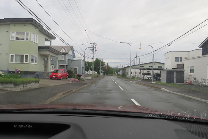 末広町の南岸通り、西4号線バス停前から野付牛自動車学校方向