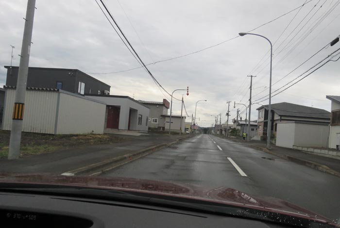 産岸通りから左折して西5号線のバス停前から北光通り交差点方向