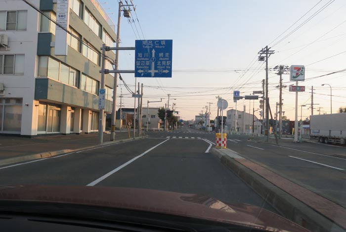 写真右が野付牛自動車学校方向