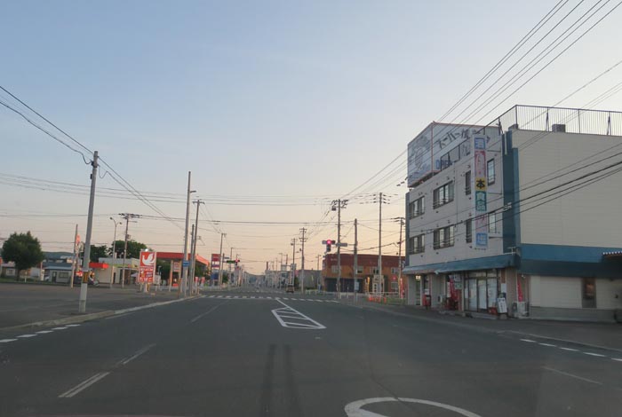 末広町の南岸通り、西4号線バス停前から野付牛自動車学校方向