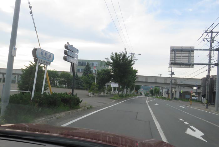 昭和通りの小泉中学校グラウンド角の交差点から北見大橋方向