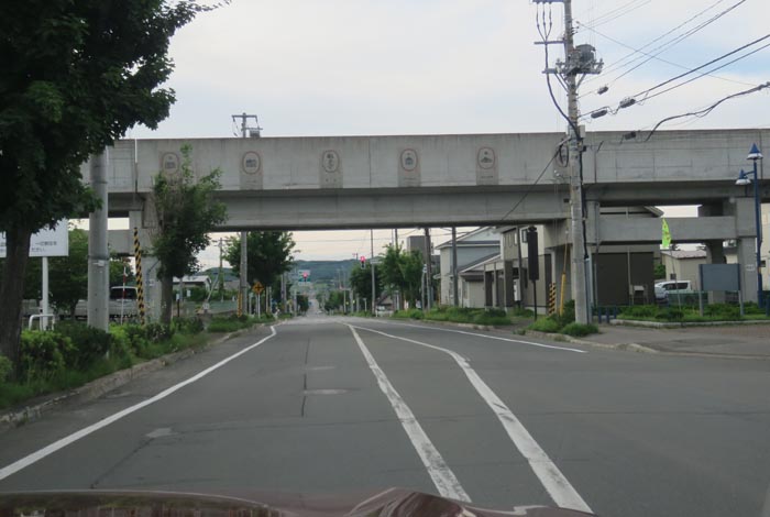 前方がJR石北本線高架橋、写真右が北見駅方向