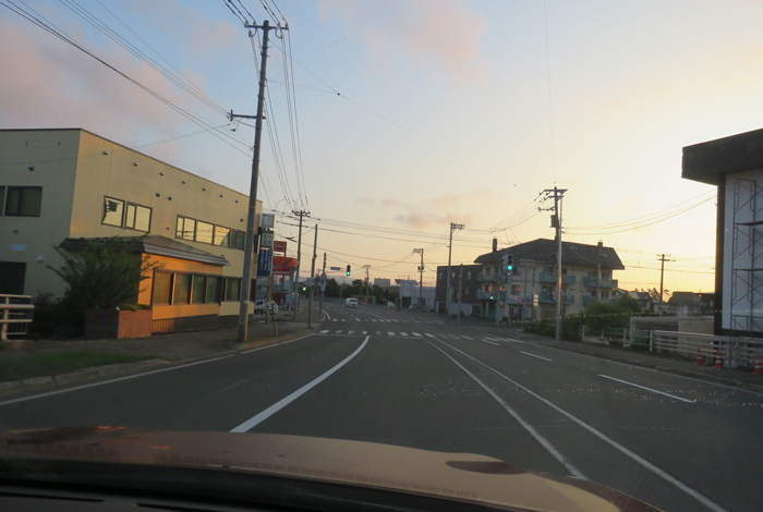 南岸通り、野付牛自動車学校前、前方はとん田通りの交差点