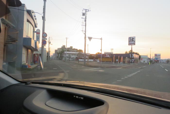末広町の南岸通り、西4号線バス停前から野付牛自動車学校方向