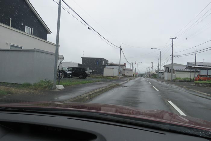 産岸通りから左折して西5号線のバス停前から北光通り交差点方向