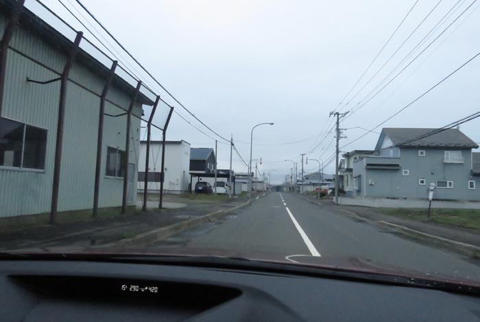 産岸通りから左折して西5号線のバス停前から北光通り交差点方向