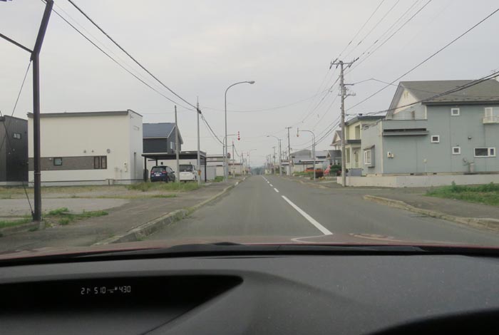 産岸通りから左折して西5号線のバス停前から北光通り交差点方向