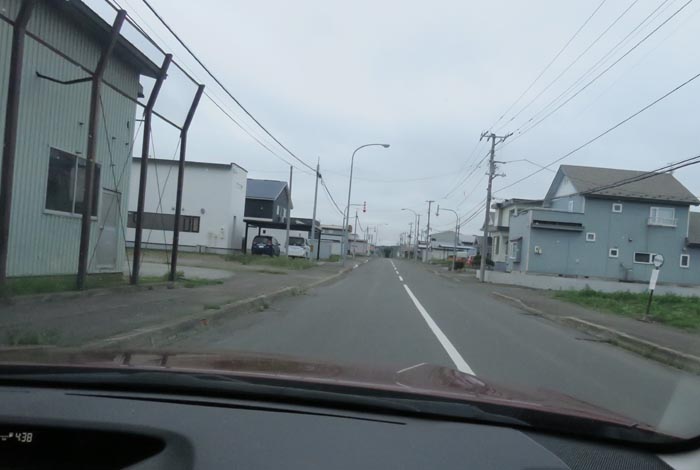 産岸通りから左折して西5号線のバス停前から北光通り交差点方向