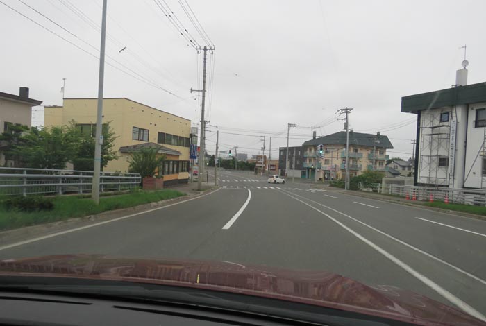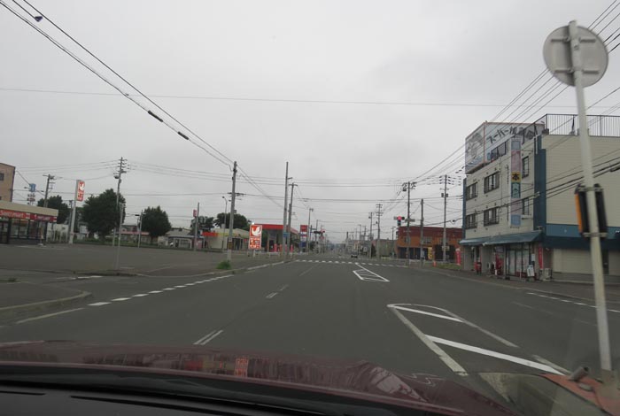 南岸通り、野付牛自動車学校前、前方はとん田通りの交差点
