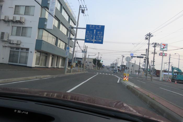 南岸通り、とん田通りの交差点から右は北光神社方向