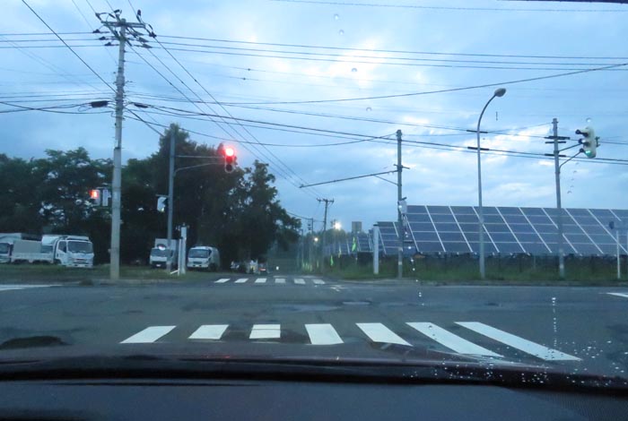南岸通り、野付牛自動車学校前、前方はとん田通りの交差点
