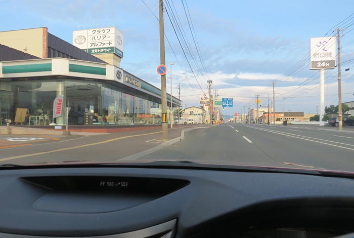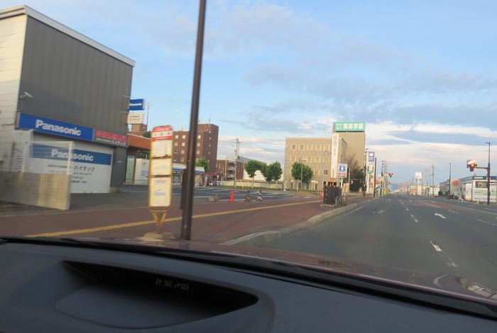 午前5時00分、北4条通りの国道39号交差点を右折で緑園通り方向