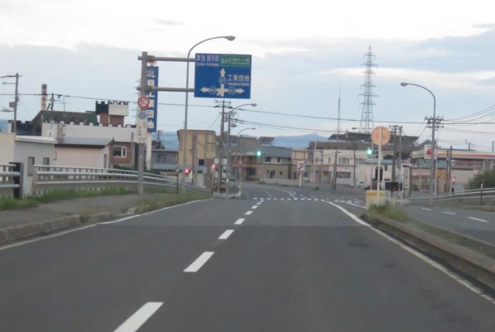 とん田通り、無加川橋を渡り錦町の南岸通り交差点