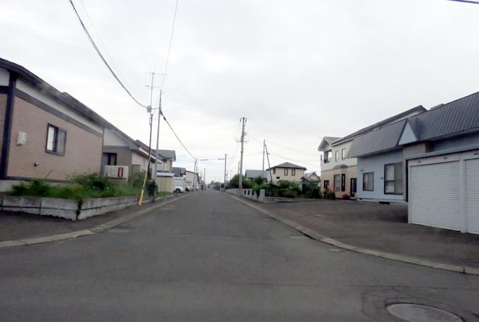 産岸通りから左折して西5号線のバス停前から北光通り交差点方向