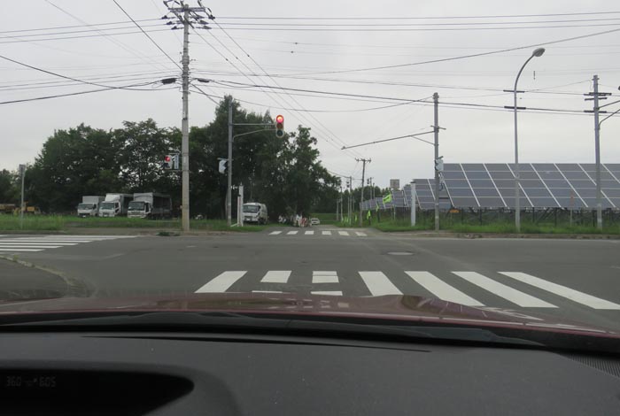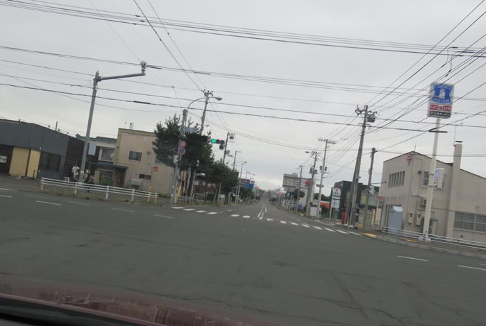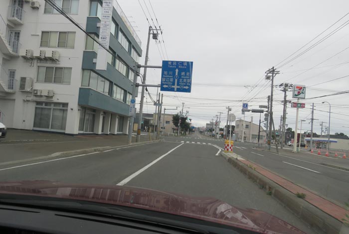 南岸通り、野付牛自動車学校前、前方はとん田通りの交差点